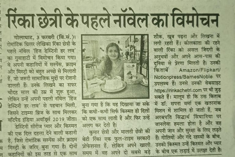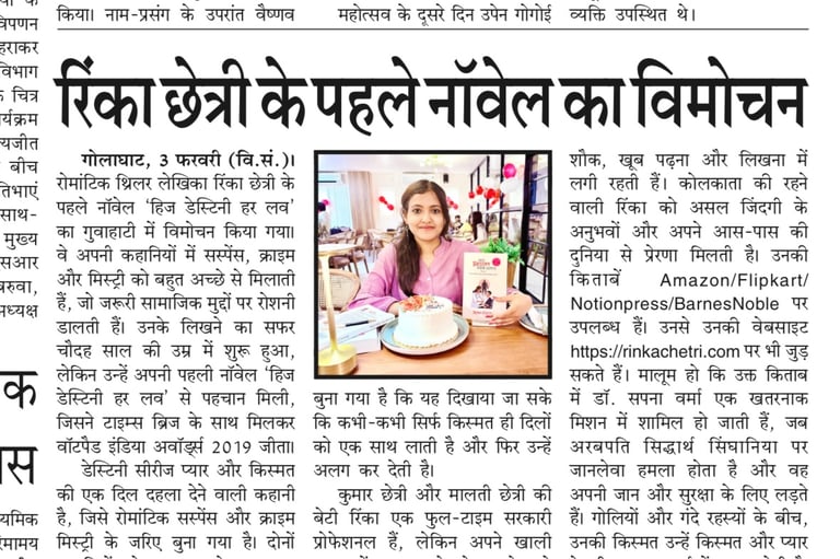 It marked a major milestone in my literary journey with the unveiling of my debut novel His Destiny Her Love at Tribe Town Bistro restaurant in Guwahati on February 1, 2026. The event introduced readers to my distinctive voice in romantic thrillers, a genre where I seamlessly blends suspense, crime and mystery while touching upon contemporary social issues.